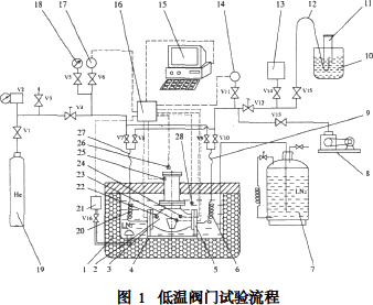 如圖1所示,基於計算機數據采集的低溫閥門試驗裝置依次包括: