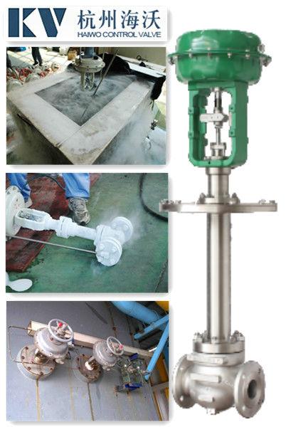 氣動薄膜低溫調節閥是一種(zhǒng)在低溫、深冷場合使用的調節閥。采用(yòng)長頸閥蓋保溫,配用多彈簧 執行結構,具有總體結構緊(jǐn)湊、重量輕、穩定性好等優點。閥體(tǐ)采用精密鑄造角形結構,材料為鋁合金,具有良好的耐(nài)低溫性。波紋管密封(fēng)保證了調節閥在低溫場(chǎng)合不外漏。因而廣泛應用於冶金、空分、製氧(yǎng)、石油、化工等(děng)低溫、深冷場(chǎng)合。特別適(shì)用於精確控製低溫氣體、流體(如液氧、液氬等)的工藝參數保持在給定值。