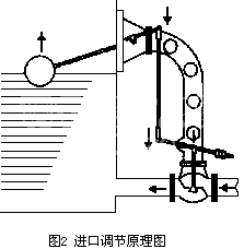 自力式液位調節閥又稱浮子液麵調節器,其工作原理如圖2所示,浮球通過連杆機構與調(diào)節閥的閥杆相連接(jiē)。通過浮球和連杆機構的作用,調整調節閥的(de)開度來使液位保持在適當的高度上。當出液量減少,容器內液(yè)位升高時,說明進液量大於出(chū)液(yè)量,浮球隨之升高,並通過連杆機構立即將閥門(mén)關小;反之,當液位降低時浮球通過連杆(gǎn)機構將閥門開大,直到進出液量相等,液位穩定為止。這就是進口控製的(de)工(gōng)作原理。