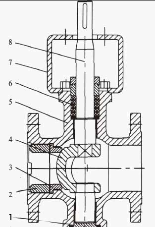 1.底蓋2.護圈3.閥座4.半球體5.閥體6.填料7.支架8.軸1.閥座2.半球體