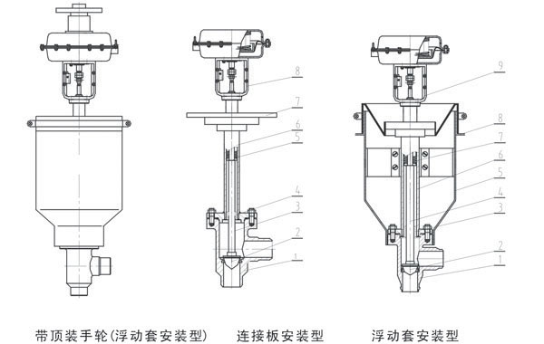 1、閥體2、閥芯3、導向套4、閥杆5、浮(fú)動套6、長頸閥蓋(gài)7、波紋(wén)管(guǎn)8、連接板9、執行機構
