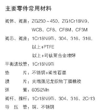 三、ZZY-II型(xíng)自力式帶(dài)指揮器型壓力調節閥的主要零件(jiàn)常用材料: