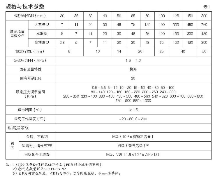 二、ZZY-II型自力(lì)式帶指揮器型(xíng)壓力調節閥規格(gé)與(yǔ)技(jì)術參數: