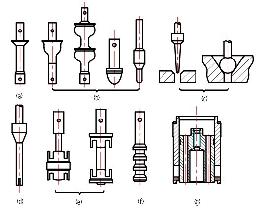 a)平板型閥芯、b)柱塞型閥芯 、c)球型、針型閥芯 、 d)圓柱體上(shàng)銑出小槽閥芯 、e)窗口型閥(fá)芯、f)多級閥芯、g)套筒閥閥(fá)芯