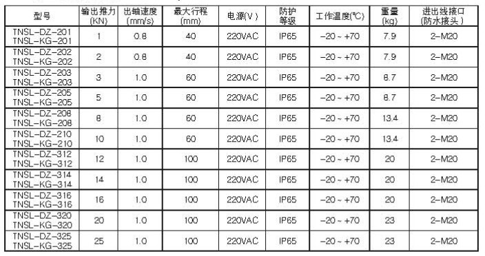 三、TNSL-DZ/TNSL-KG型電子式電(diàn)動執行器型號規格: