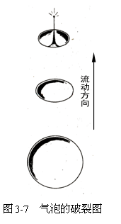 二、產(chǎn)生氣蝕,如圖(3-7)所示,調節閥產生空化作用時,在縮流處的後麵,由於壓力恢複,升高的壓力壓縮氣泡,達到臨界(jiè)尺寸的氣泡開始變為橢圓形,接著,在上遊表(biǎo)麵開始變平。然後突然爆裂,所有的能量集中。在破裂點上,電動(dòng)調(diào)節閥產生極大的衝擊力,如果氣泡在接近節流孔後附近的固體表麵處破裂,這種衝(chōng)擊力會慢慢地撕裂材料表麵,形成(chéng)類似於(yú)煤渣的粗糙表麵。