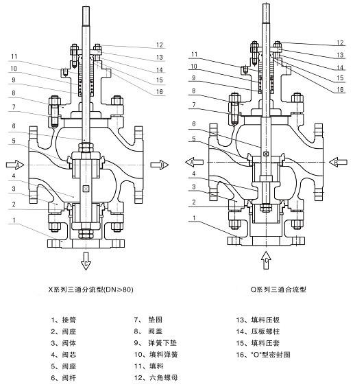 PN16為凸麵;PN40、64、100為凹凸麵,閥體為凹麵。
