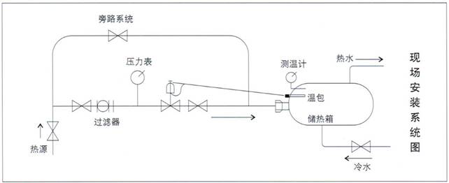 (3)為使自控係統或檢修閥門時仍能連續運行,應設(shè)置旁通閥、閥前(qián)須裝過(guò)濾器、壓力表,在(zài)傳感器附近裝測溫計(jì),便於現場監視與溫度設定。見下圖: