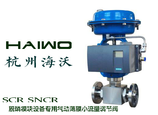 氣動薄膜小流量調節閥專門用於SCR/SNCR煙氣脫硝係統,使用介質一般為20%濃度氨水(shuǐ)或尿素,通過上位機的控(kòng)製,精準調節氨水或尿素的(de)噴射量(liàng),從而達(dá)到更高標準的(de)煙氣脫硝效率,符合煙氣環保要求。